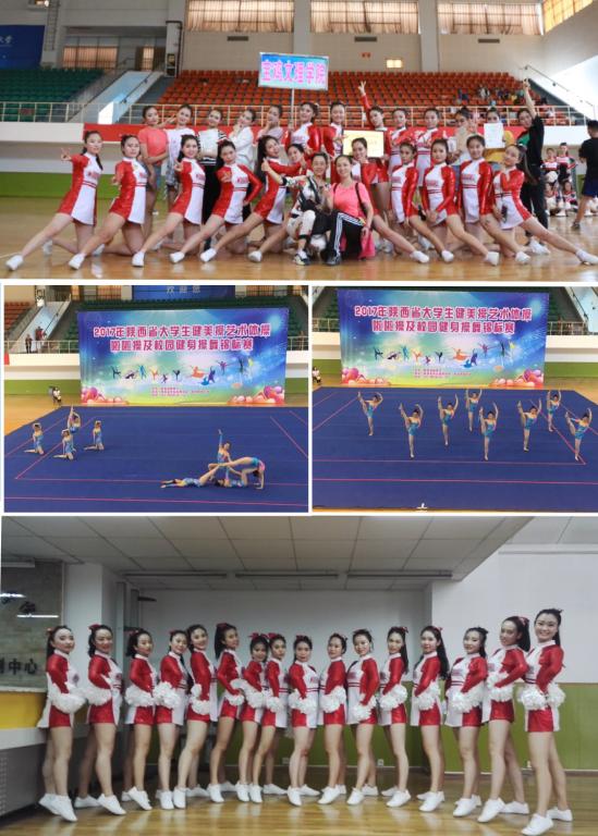 由陕西省教育厅主办,省学生体育协会、西安邮电大学承办的“2017年陕西省大学生健美操、艺术体操、啦啦操及校园健身操舞锦标赛”于2017年6月5日—7日在西安邮电大学长安校区体育馆隆重举行。来自全省43所高校的1000多名运动员参加了本次比赛,整场赛事规模宏大,气氛热烈。我校由黄龑、张雷、沈一岚、齐娇娇四名教练带领甲、乙两组51名运动员参加比赛。队员们在比赛中体现了奋勇争先、不甘落后的精神风貌,整场比赛精彩纷呈,动作的挥洒和队形的变化之间展现出无限的青春和与激情,给观众以强烈的震撼。经过三天的激烈角逐,最终甲组获得艺术体操纱巾操第二名、艺术体操集体操第二名及全能赛第二名、健身排舞规定套路第三名、爵士啦啦操第五名、花球啦啦操第六名;乙组获得健身排舞规定套路第二名、健身排舞自选套路第三名、傣族健身舞第三名、Hip-pop街舞第五名、花球啦啦操第八名以及团体总分第六名的成绩。同时我校还获得“体育道德风尚奖”,张雷老师被评为“优秀教练员”,李少伟、韩雪儿同学被评为“优秀运动员”。(体育系 文/张雷 图/沈一岚)