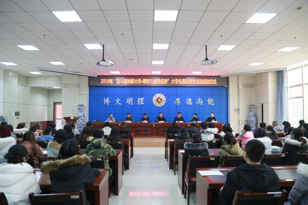 2019年,学校从获得2018年度国家奖学金、国家励志奖学金的学生中共遴选出109名学生资助宣传大使,组建百人宣讲团,利用寒暑假和课余时间开展资助政策宣讲,在青年学生中讲好资助政策、讲好励志故事,发挥榜样力量,传递爱国奋斗精神和追求人生梦想的正能量。