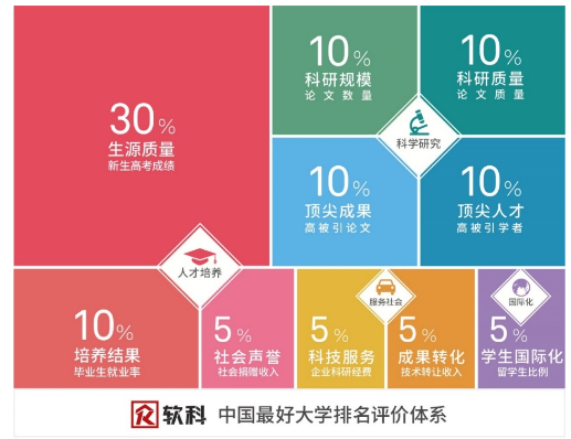 据悉,中国最好大学排名方法的评价体系以涵盖人才培养、科学研究、服务社会和国际化四个维度,使用的都是最能体现大学办学水平的关键指标,例如新生高考成绩、毕业生就业率、论文数量与质量、成果转化收入等,因此排名结果能够客观地反映大学的竞争性地位。