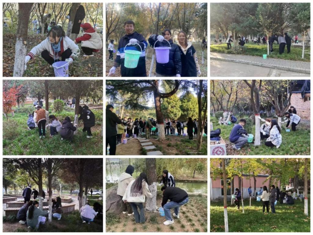近日,后勤管理处(后勤服务集团)、教务处、学工部、校团委联合十六个二级学院开展学生志愿者树木涂白义务劳动活动。