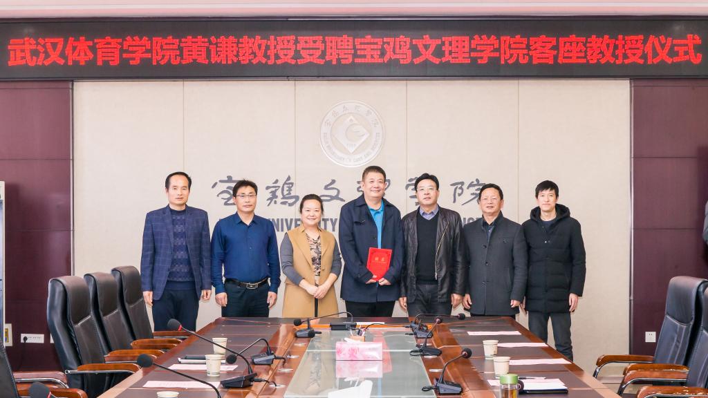 近日,学校在高新校区图书馆801举行聘任仪式,聘任武汉体育学院黄谦教授为我校体育学院客座教授。校党委副书记韩干校出席聘任仪式。