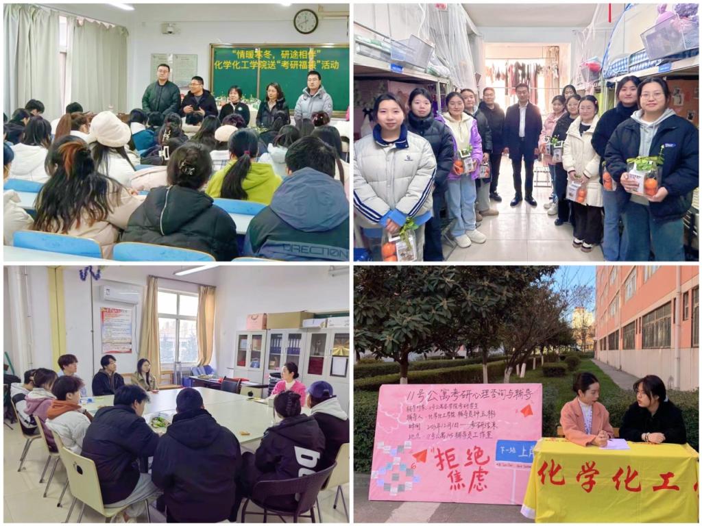 2024届硕士招生考试在即,为帮助考研学子坚定备考信心,缓解考前压力,鼓舞备考士气,11月以来,化学化工学院开展“情暖寒冬‘研’途相伴”为考研学生系列送温暖活动。