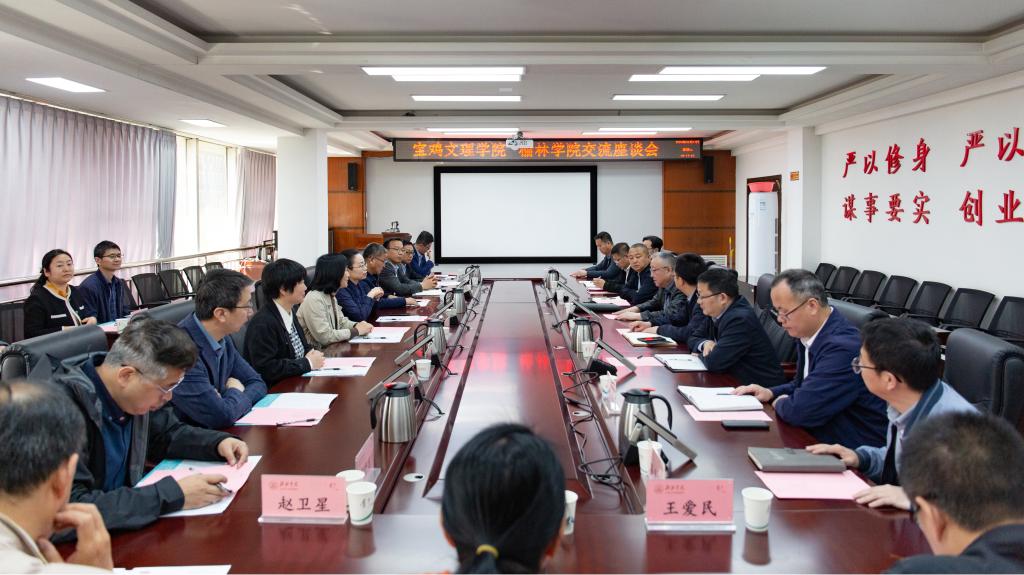 在榆林学院座谈交流会上,凡明锦介绍了我校发展历史、学科专业、师资队伍、人才培养、科学研究等方面的具体情况。她表示,两校在办学定位、专业设置、服务地方等方面有许多相似之处,希望与榆林学院携手面向陕西经济主战场,在国家基金及区域项目申报、高水平科研团队建设等方面推进深度合作,实现共赢发展。她要求,各二级单位要与榆林学院建立常态化联系,加强沟通,互通有无,深挖拓宽校际共赢发展的合作点,为谱写榆林、宝鸡乃至陕西高质量发展新篇章作出新的更大贡献。