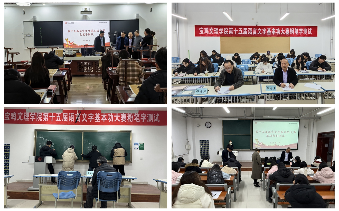 11月17日,学校在高新校区和石鼓校区分别举行基础知识测试,通过读音写字、汉字组词、纠正错字、补全成语和完善诗句五种题型考查学生在汉字规范、读音、认知等方面的基础素养,评选出一等奖32名、二等奖41名、三等奖71名。11月18日至19日,经各二级学院初赛遴选,154名选手参加了在博文楼举行的三笔字测试复赛,56人入围决赛。
