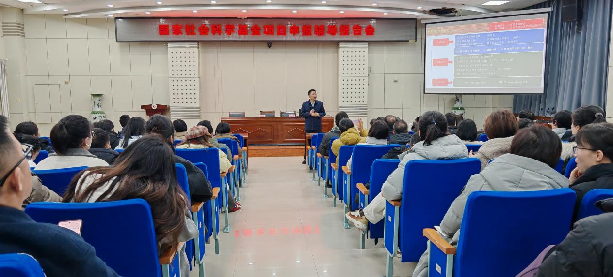 12月22日下午,我校在高新校区图书馆木铎厅举办2026年度国家社科基金项目申报辅导报告会。中国教育科学研究院杨润勇研究员应邀作题为《社科课题有效申报策略与方法》的专题报告。报告会由科研管理处处长胡登卫主持。