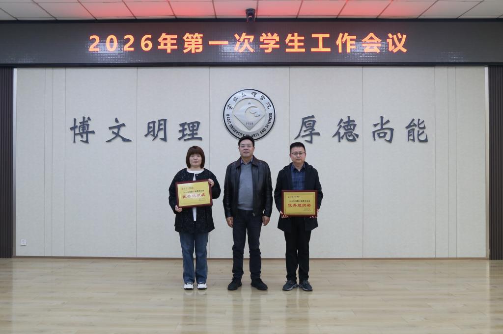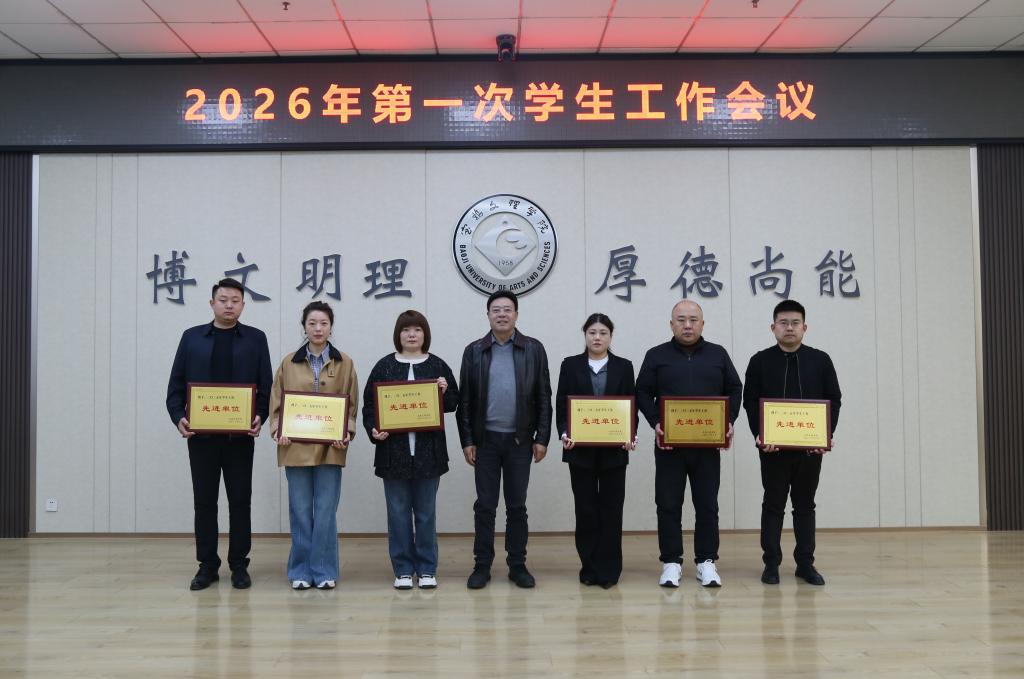 会议表彰了2025年学生工作先进单位和2026年寒假“勤学思奋进,笃行向未来”主题教育活动优秀组织单位。韩干校为获奖单位颁发了奖牌。