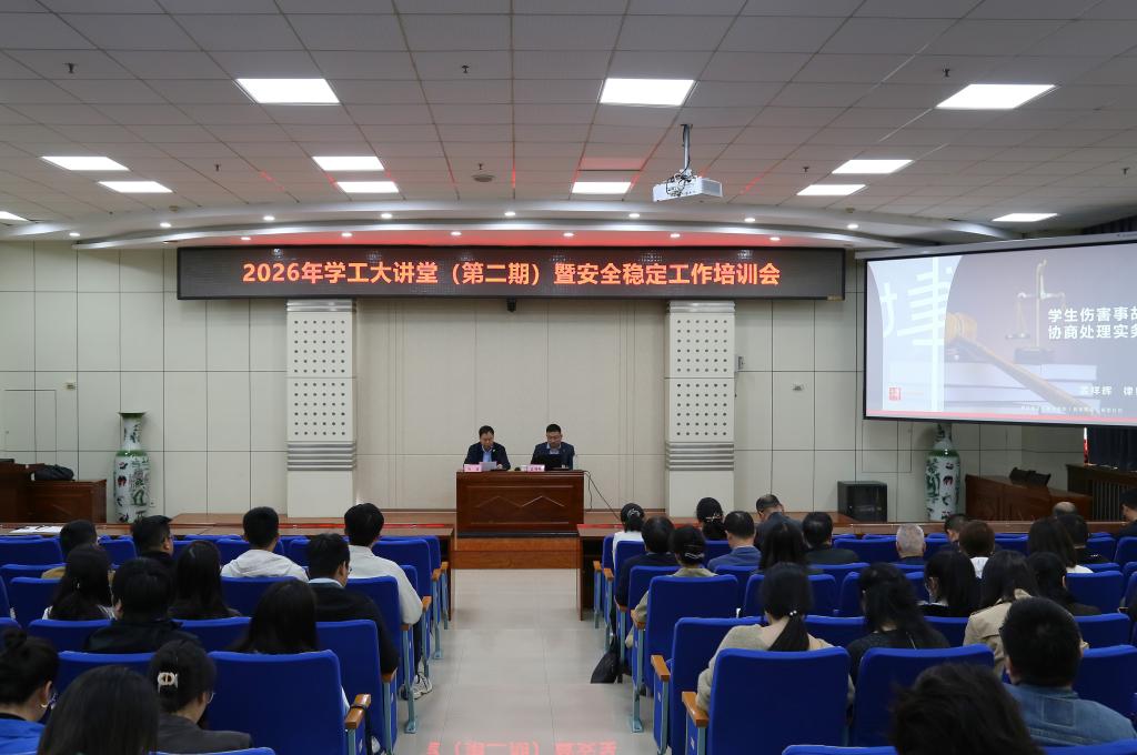 4月13日下午,学校稳定安全办公室、党委学生工作部在高新校区木铎厅联合举办了2026年学工大讲堂(第二期)暨安全稳定工作培训会,陕西博硕律师事务所副主任孟祥辉律师应邀作了题为《学生伤害事故协商处理实务》的专题培训。培训会由学工部部长冯森主持。