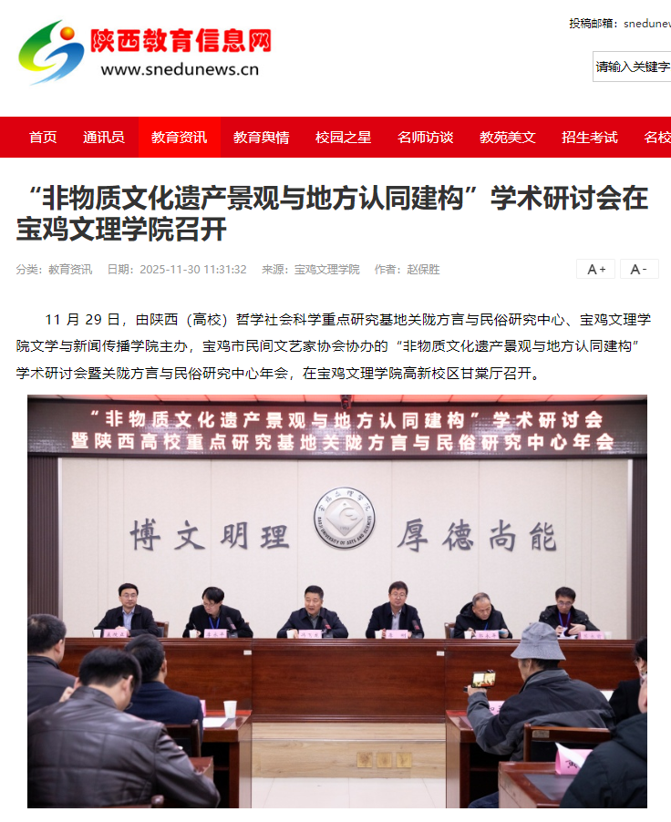 近日,学校召开第十七次学生代表大会、第五次研究生代表大会,入选教育部专业大模型赋能AI+应用型大学建设项目院校,全力做好访企拓岗促就业各项工作,“绿色无毒 法润三秦”百场行关中专场走进我校,“非物质文化遗产景观与地方认同建构”学术研讨会在学校召开等活动引起陕西教育信息网、阳光网、三秦都市报、起点新闻、视界观、中华网、今日头条等多家媒体广泛关注和报道。