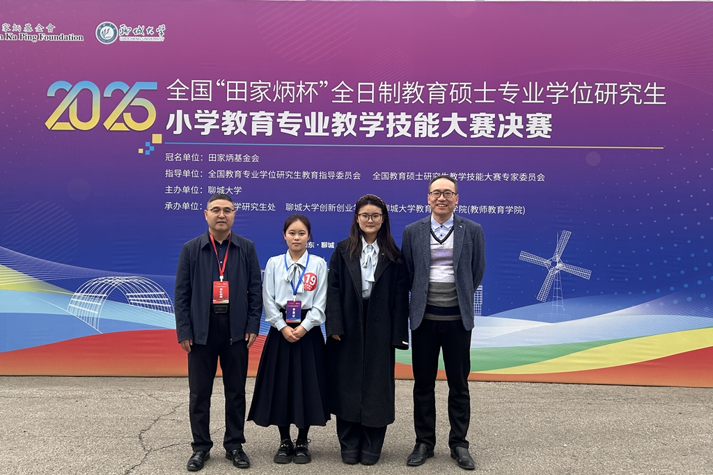 近日,2025年全国“田家炳杯”全日制教育硕士专业学位研究生小学教育专业教学技能大赛决赛在聊城大学举行。我校2024级小学教育专业硕士研究生王莎获三等奖、张歌获优秀教学设计奖。