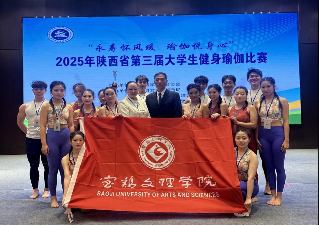 近日,2025年陕西省第三届大学生健身瑜伽比赛落下帷幕。我校参赛队获个人项目第一名3项、第二名5项、第三名3项,集体项目第一名2项、第二名3项;最终获得乙组团体第一名。何雨珊、潘鑫同学获“优秀运动员”称号,张雷获“优秀教练员”称号。