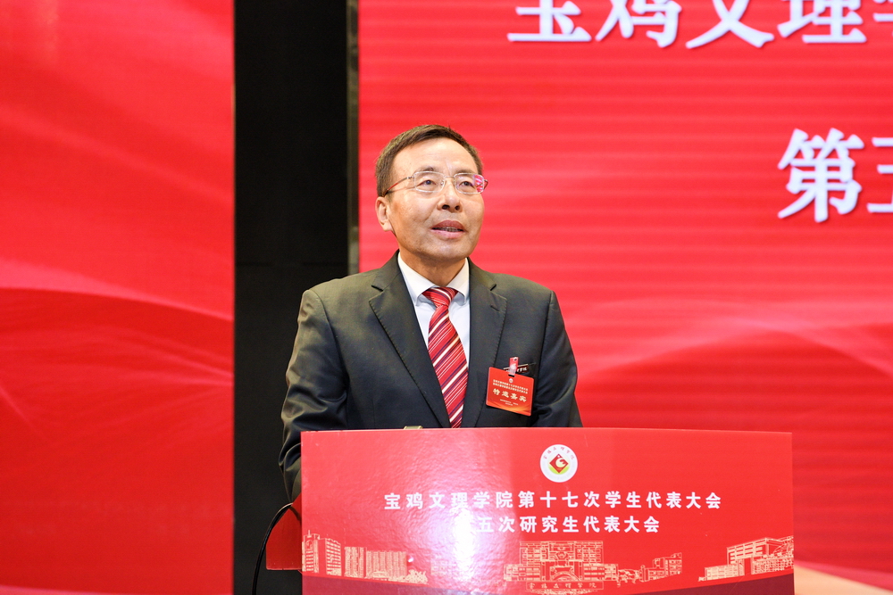 12月14日,我校第十七次学生代表大会、第五次研究生代表大会在高新校区博文楼报告厅召开。校党委书记郭霄鹏、党委副书记韩干校,陕西省学生联合会驻会执行主席张一洋出席大会。会议由校团委书记郭理想主持。